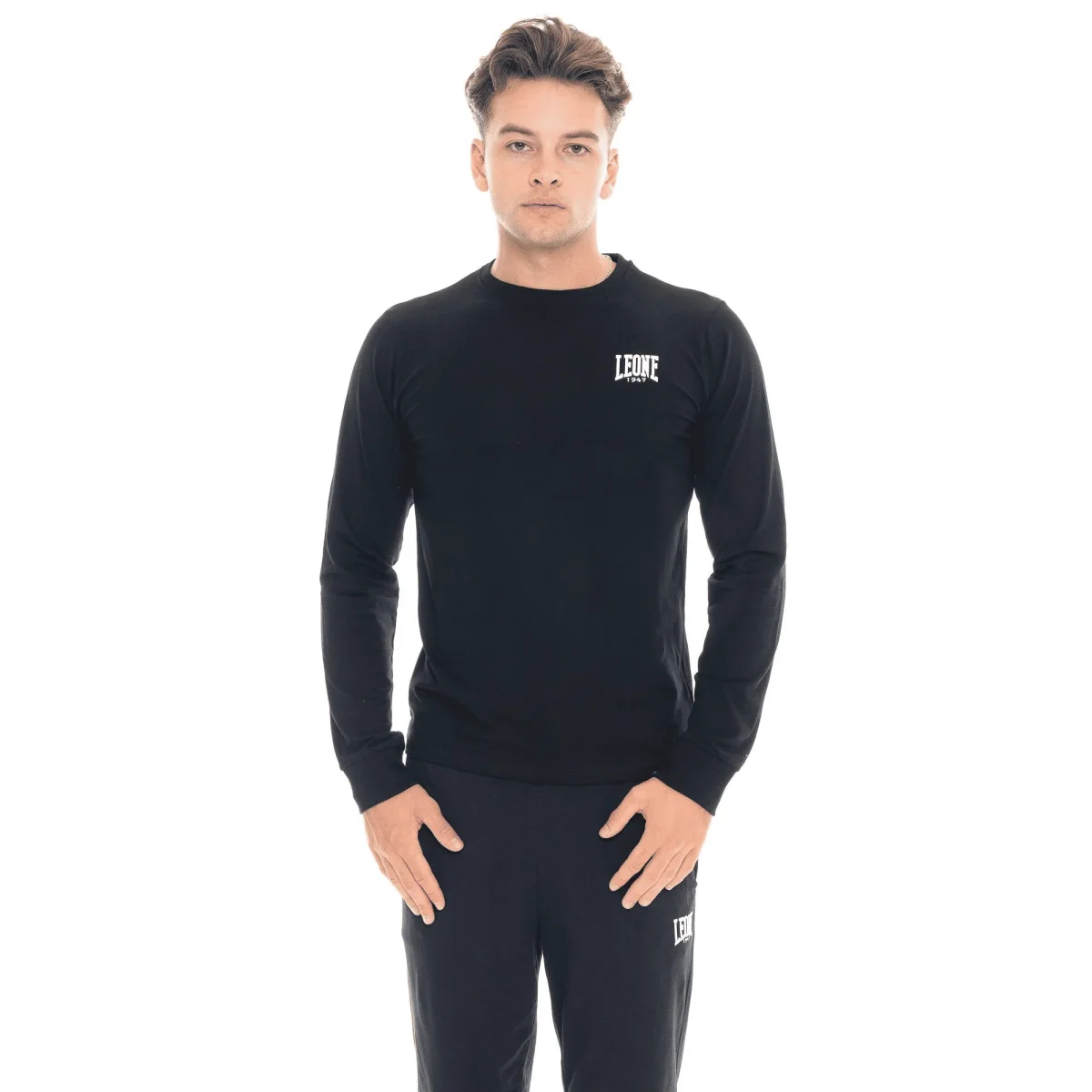 T-shirt da uomo in cotone elasticizzato a manica lunga con logo grande “Basic”