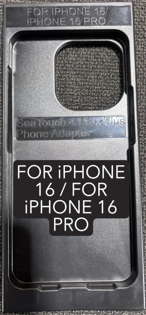 La custodia SeaTouch viene fornita con gli adattatori standard per tutti i tipi di iPhone fino al modello 15 e Samsung fino al modello 26.