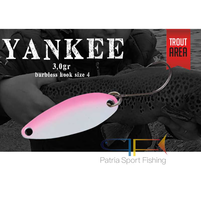 Lo Yankee è un ondulante dal nuoto atipico ma facile da scagliare lontano. Questo artificiale ha veramente un nuoto diverso ed irregolare rispetto ai modelli che si trovano in commercio. Proprio durante le prove era chiamato scherzosamente, dai nostri tester in vari modi: il risolutore, l’apatico, secret spoon . Ciò per sottolineare la sua efficacia in situazioni di totale apatia. Un artificiale che rende veramente al meglio quando i pesci rifiutano gli altri ondulanti è il momento di usare lo Yankee!!!!