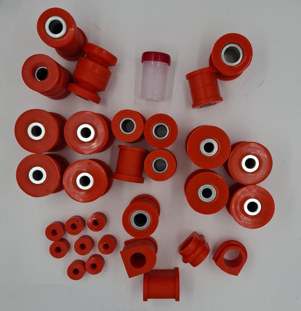 Kit completo boccole sospensioni realizzate in mescola poliuretanica molto più resistente delle originali. Ideali per fuoristrada.