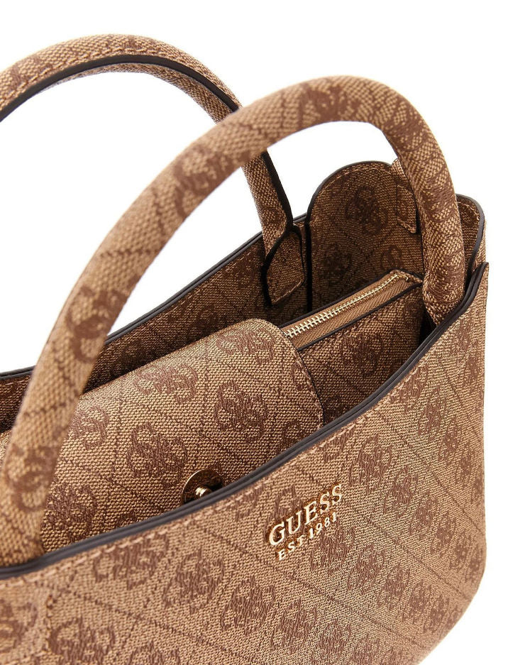 Dettaglio con logo in metallo sul davanti.