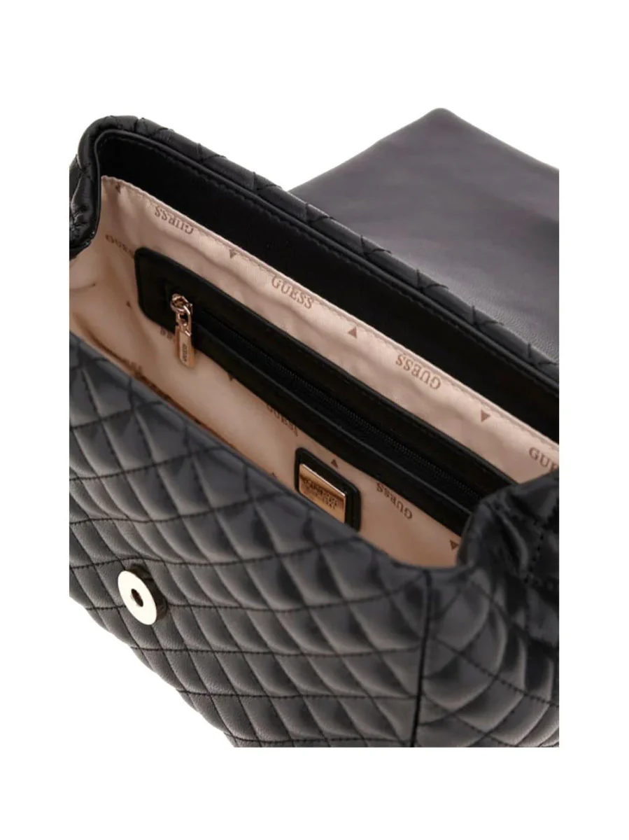 Guess Borsa A Tracolla Everlee Convertible Xbody Flap Donna Nero – Elegante e originale, con doppia portabilità a spalla e crossover. Ideale per completare ogni outfit con stile. Realizzata in ecopelle con chiusura a bottone. Misure: 21x16x10 cm (lxhxp).