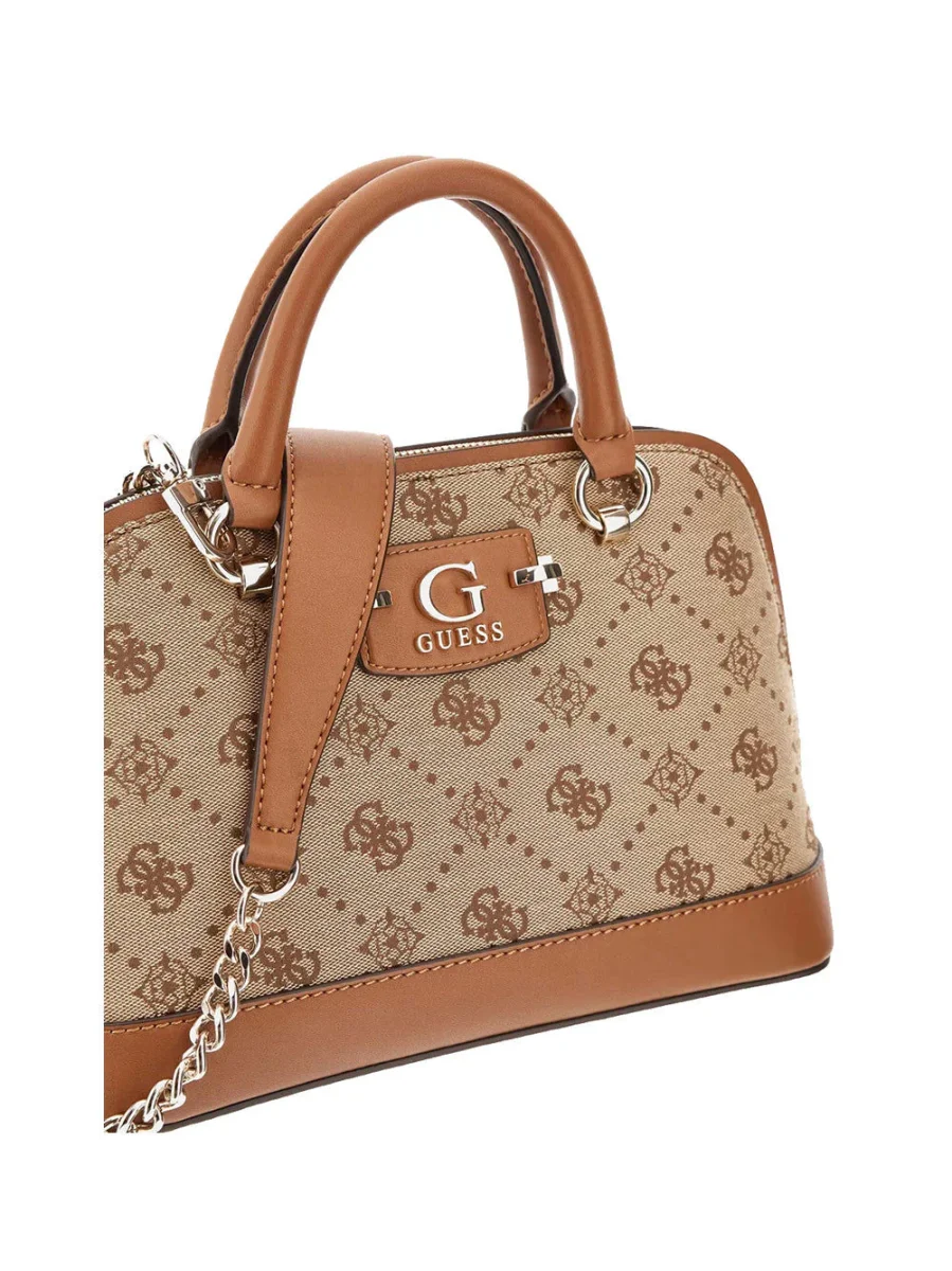 La borsa a mano Guess Neda è un accessorio elegante e alla moda, realizzato in materiale sintetico di alta qualità. Con chiusura a cerniera lampo e metalleria Colore oro pallido, presenta una stampa 4G e logo peony che aggiunge un tocco di glamour. La fodera personalizzata con logo e le tasche interne con cerniera lampo offrono praticità e funzionalità. Con due manici e una tracolla removibile con catena, è perfetta per ogni occasione. Misure: 26x19x11 cm.