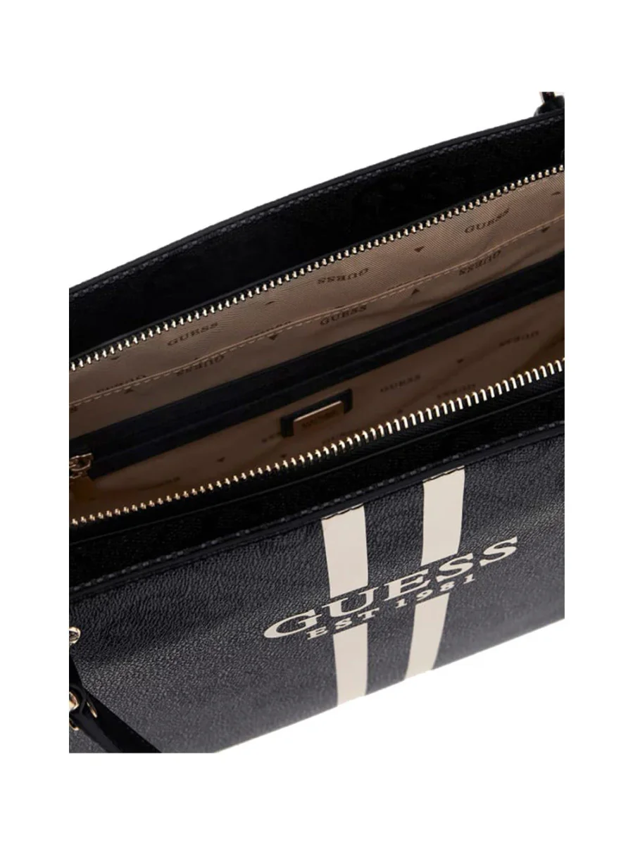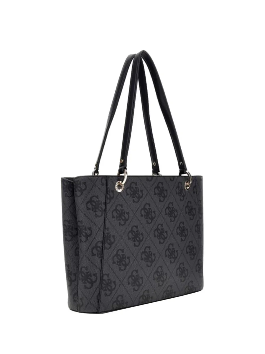Il Guess Shopper Donna in simil pelle nera è dotato di chiusura con cerniera lampo e metalleria Colore oro pallido. Appartiene alla famiglia Noelle, con stampa 4G logo e charm logato removibile. Fodera personalizzata con logo e tasca interna con cerniera lampo. Composizione principale in 100% poliuretano, misure 37x26x10 cm con due manici lunghi ca. 45 cm. Elegante e spaziosa, perfetta per ogni occasione.