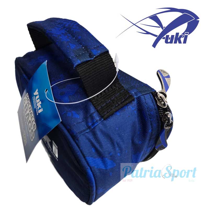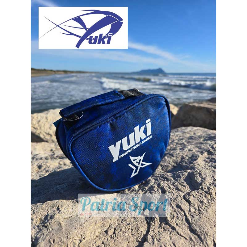 Custodia singola imbottita Yuki per mulinello. Cerniera grande antisalsedine, tessuto camouflage blue idrorepellente e maniglia rinforzata. La protezione ideale per il tuo mulinello più prezioso, compatta e anti-urto.