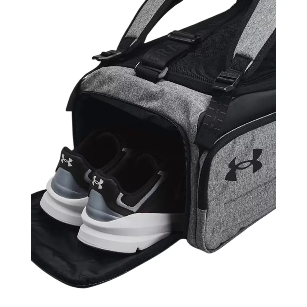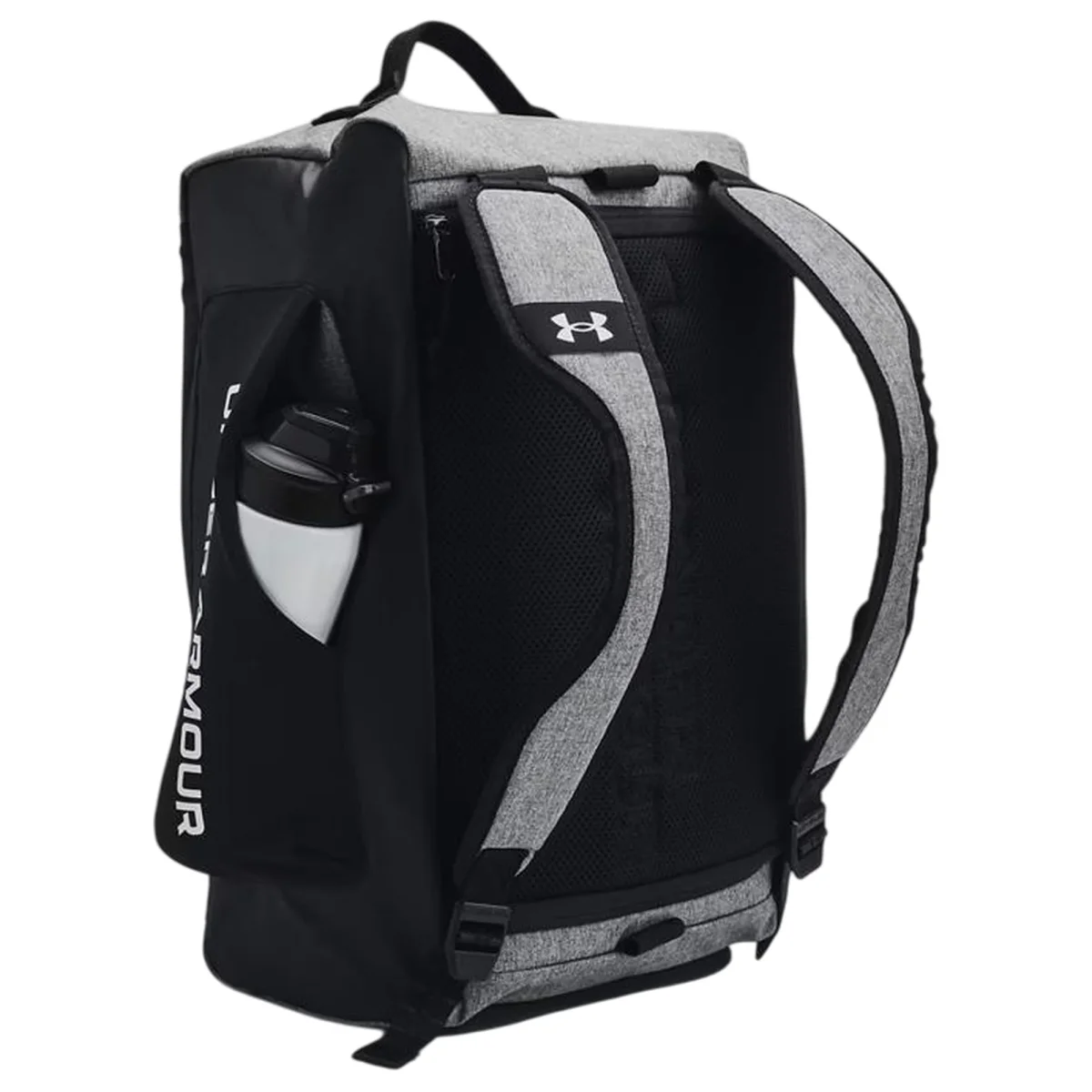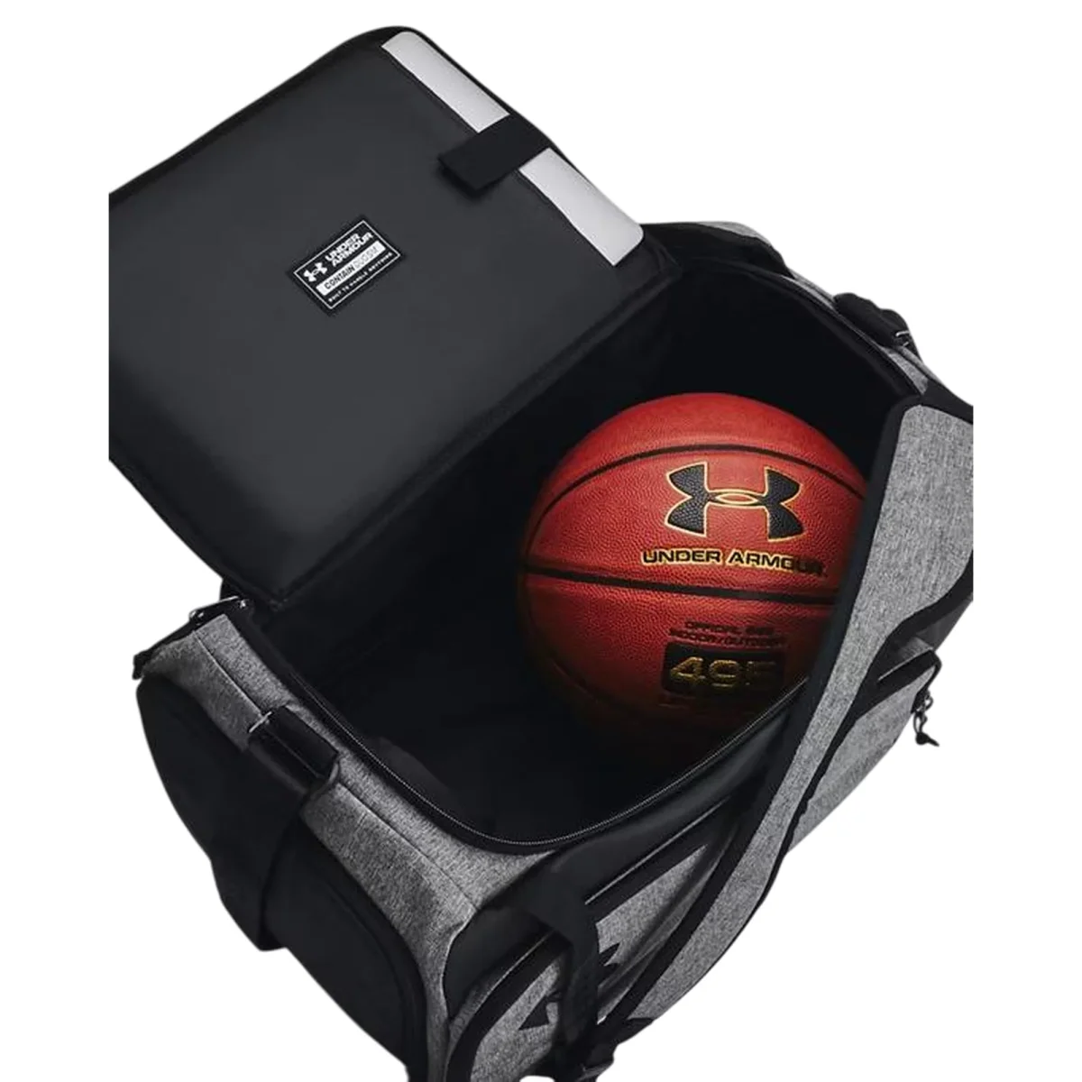 Borsone Unisex modello Duo Small grigio firmato Under Armour: la soluzione versatile che si adatta al tuo stile di vita. Indossa i comodi spallacci per trasportarlo come zaino, oppure afferra le maniglie per portarlo a mano. Realizzato con materiali robusti e rivestimento idrorepellente, questo borsone ti accompagna in ogni avventura, dalla palestra alla città, proteggendo i tuoi effetti personali da pioggia e usura. Compatto ma capiente, è il compagno ideale per chi non scende a compromessi tra praticità e stile.