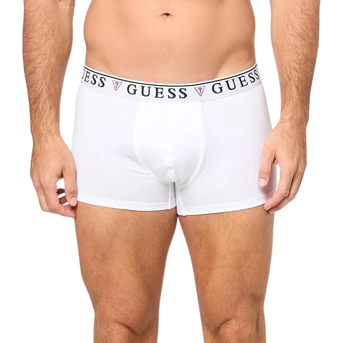 Scopri i Boxer Uomo firmati Guess! Un set composto da tre mutande, con vita elasticizzata logata, in tinta unita bianca. Perfetti anche come regalo.