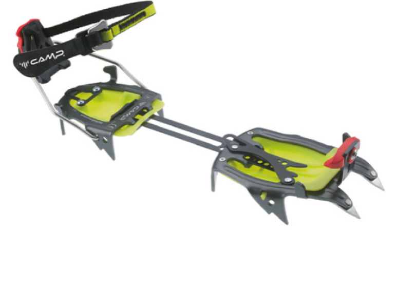 • Possibilità di sostituire l’asta di collegamento con la fettuccia in Dyneema® disponibile separatamente, per la massima leggerezza (375 g) e per poter piegare il rampone su se stesso