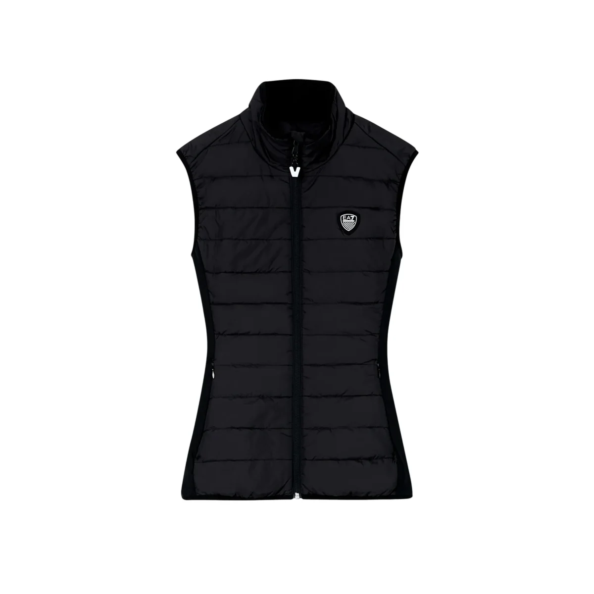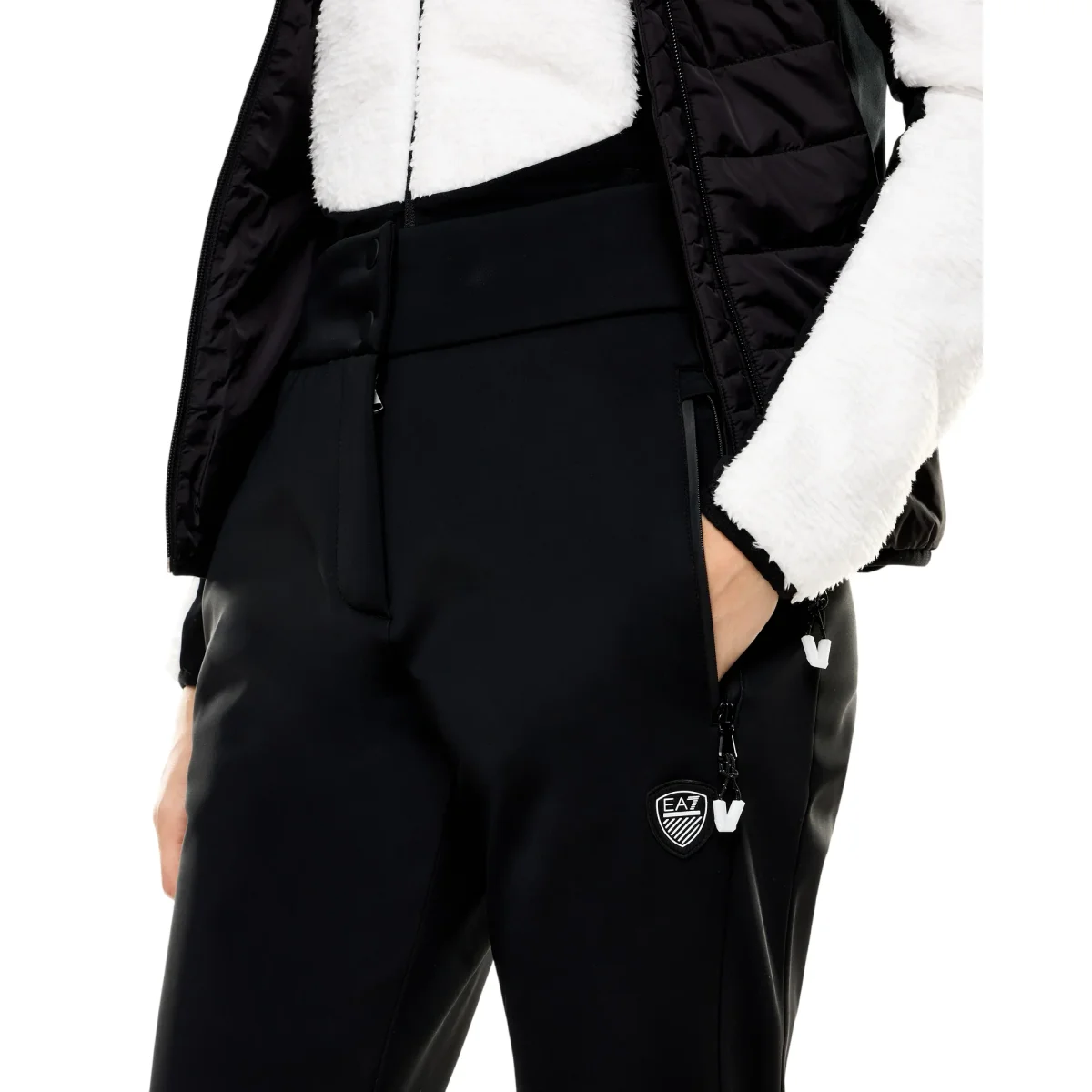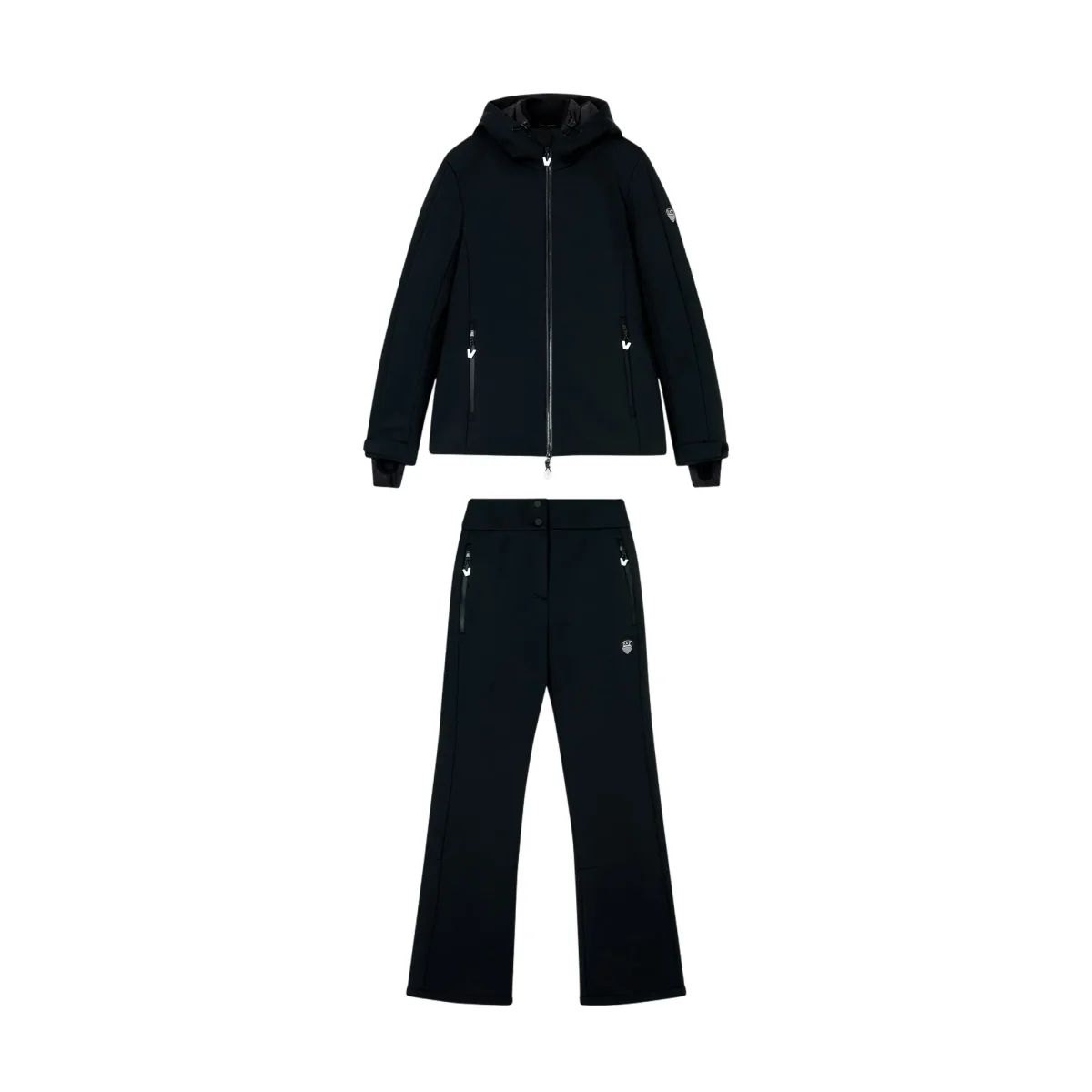 Completo tecnico da sci donna firmato Emporio Armani che unisce prestazioni e versatilità. La giacca con cappuccio, il gilet con zip e i pantaloni con ghetta interna formano una soluzione completa per le piste e la montagna. Realizzato in softshell impermeabile, idrorepellente e traspirante, il set garantisce protezione totale dagli elementi. L’innovativa imbottitura STRATUM7 RECYCLED crea uno “scudo termico” che mantiene il calore corporeo mentre allontana l’umidità. Elasticizzato e performante, questo completo è l’alleato ideale per chi vuole stile e funzionalità senza compromessi, sia sulle piste che nel tempo libero in montagna.