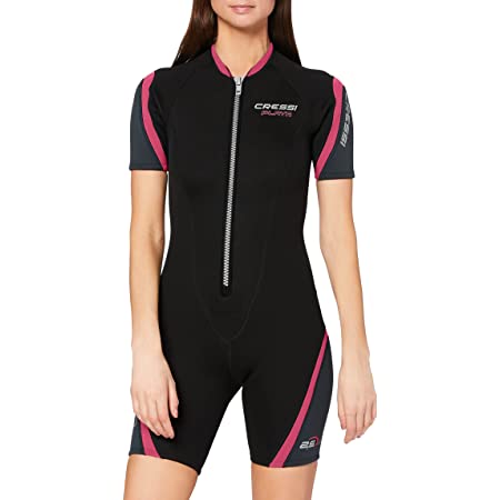 Monopezzo senza cappuccio, con pantaloncini e maniche corte, in neoprene bifoderato da 2,5 mm.