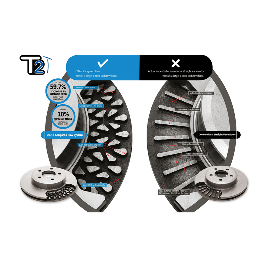 L’esclusivo sistema di ventilazione interna Kangaroo Paw di DBA utilizza pilastri a forma di diamante per: