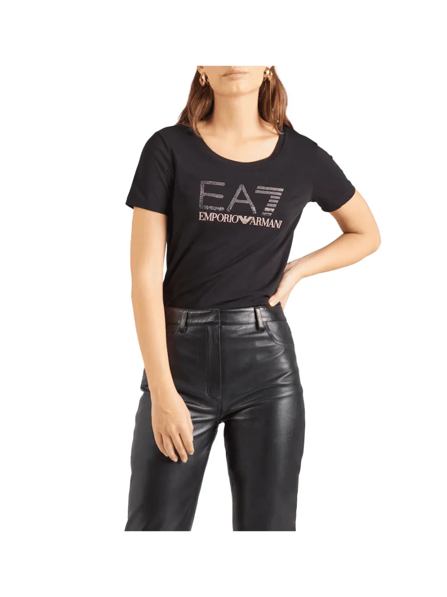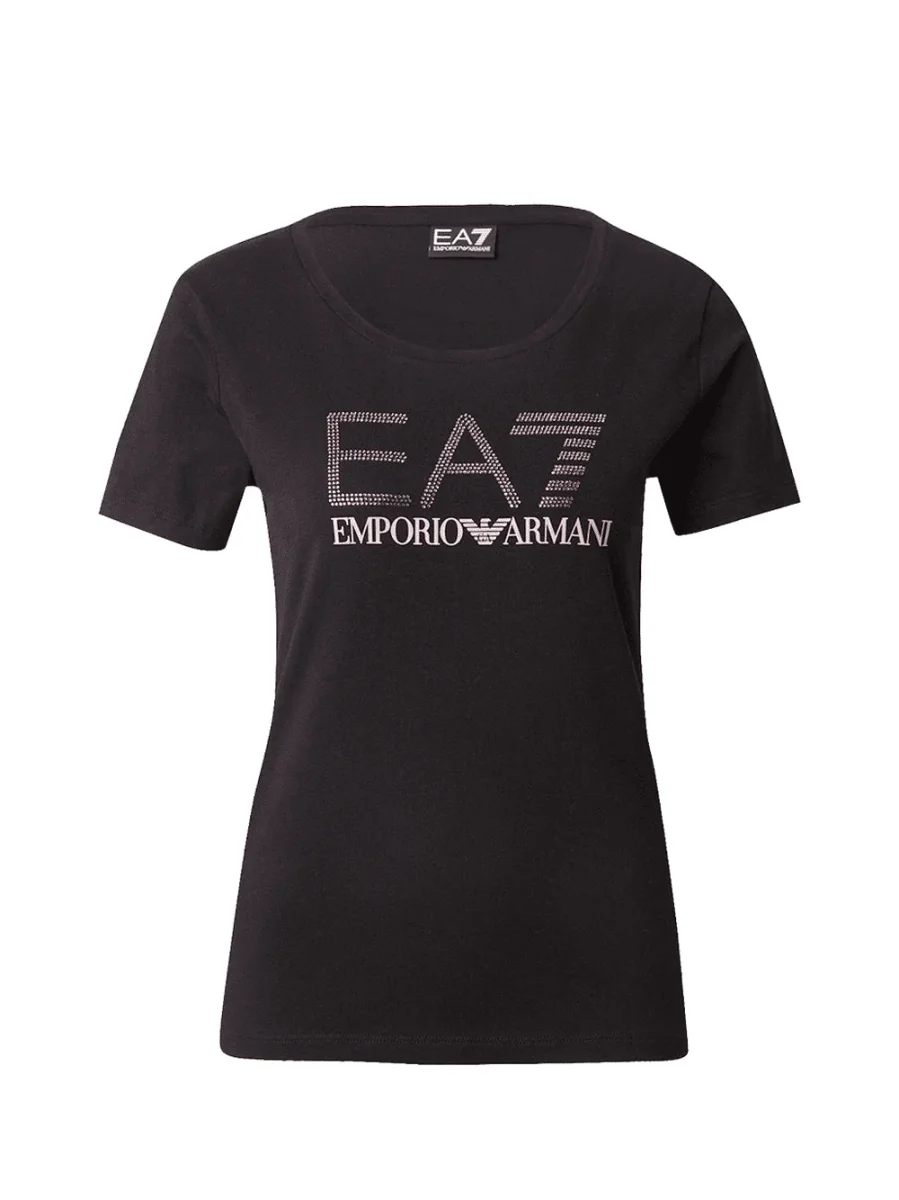 Ea7 T-Shirt Ea7 Girocollo Logo Series In Cotone Stretch Con Strass Nero