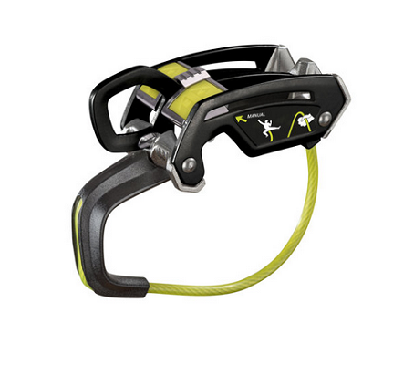 Assicuratore Edelrid che può passare da dispositivo di frenata assistita a manuale. Compatbile con le mezze corde.