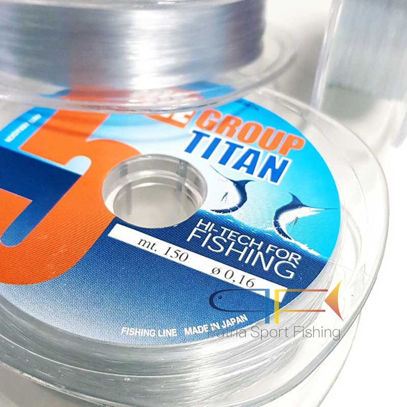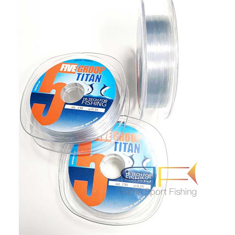 Filo Five Group Titan Metri 150 di colore neutro – E’ un filo molto resistente all’abrasione e al nodo. Caratteristica fondamentale è la sua resistenza. Si tratta di un filo impermeabile, perciò fortissimo in acqua. Il carico di rottura non è dichiarato perchè la sua resistenza è notevole.