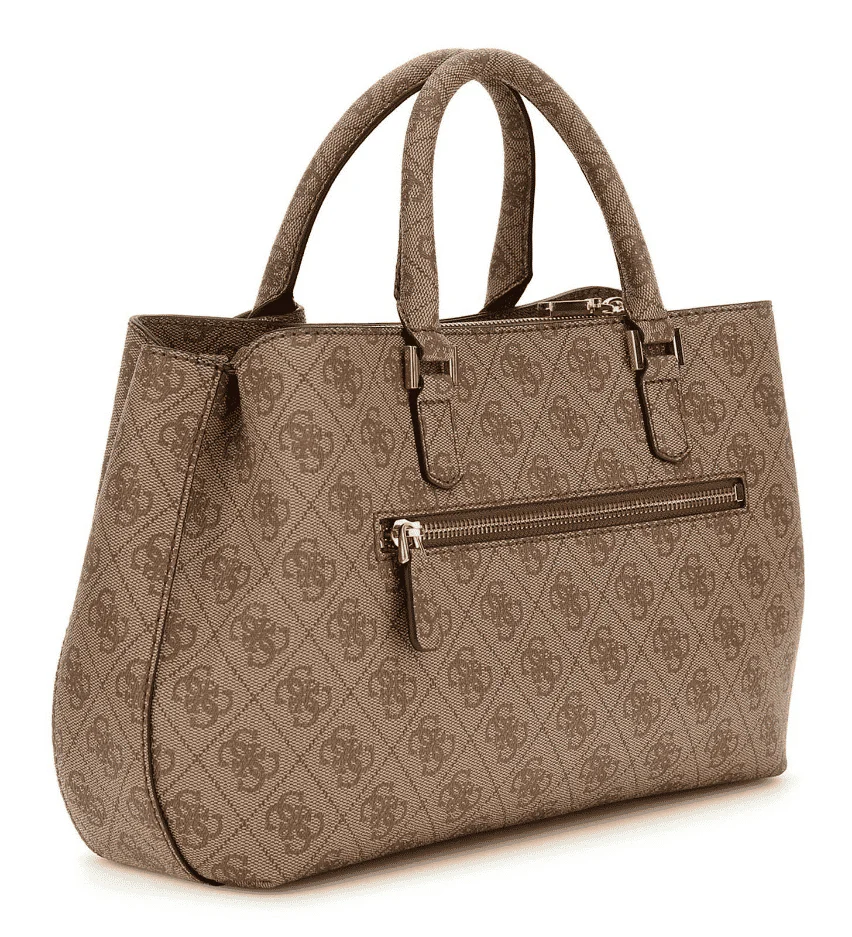 Borsa a mano Katya Coal Logo Guess: scopri la versatilità e la spaziosità di questa borsa in similpelle stampata, caratterizzata da un motivo logato che la rende unica. Con doppi manici, tracollina regolabile e removibile, dettaglio frontale e un comparto interno foderato con chiusura a cerniera.