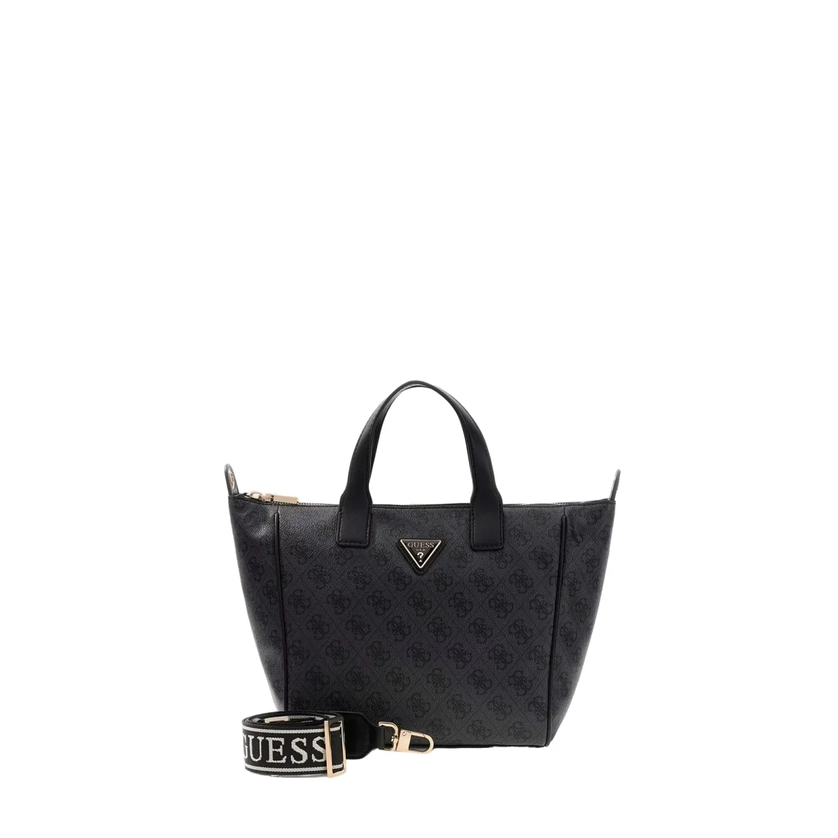 GUESS Borsa Follie Shopper con zip in Similpelle e Logo a vista in nero