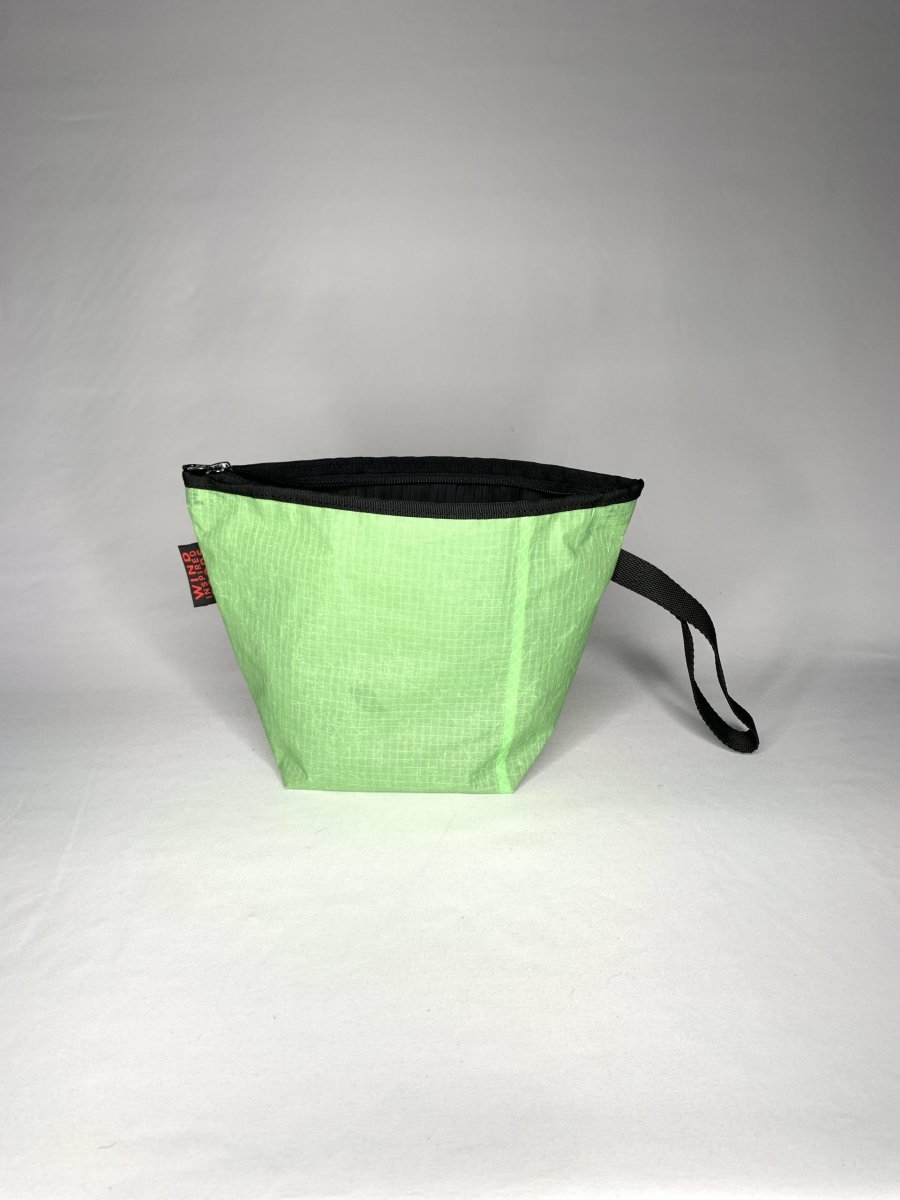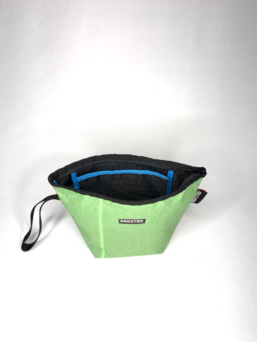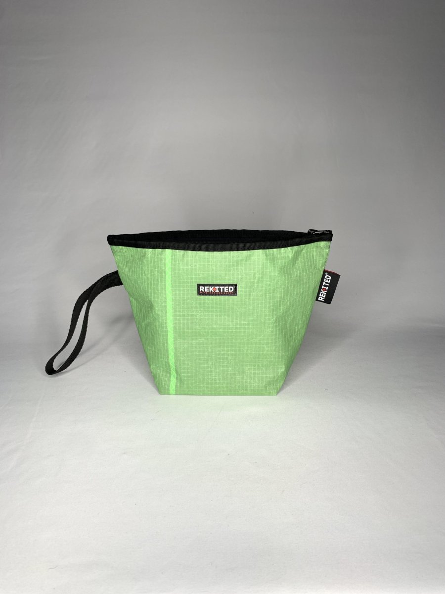 Realizzata in vela da kite riciclata, HANDLEPASS è unica e ogni pezzo conserva i segni distintivi originali della vela – valvole, patch di riparazione, scritte, rinforzi e dettagli tecnici – trasformando ogni pochette in un accessorio irripetibile.