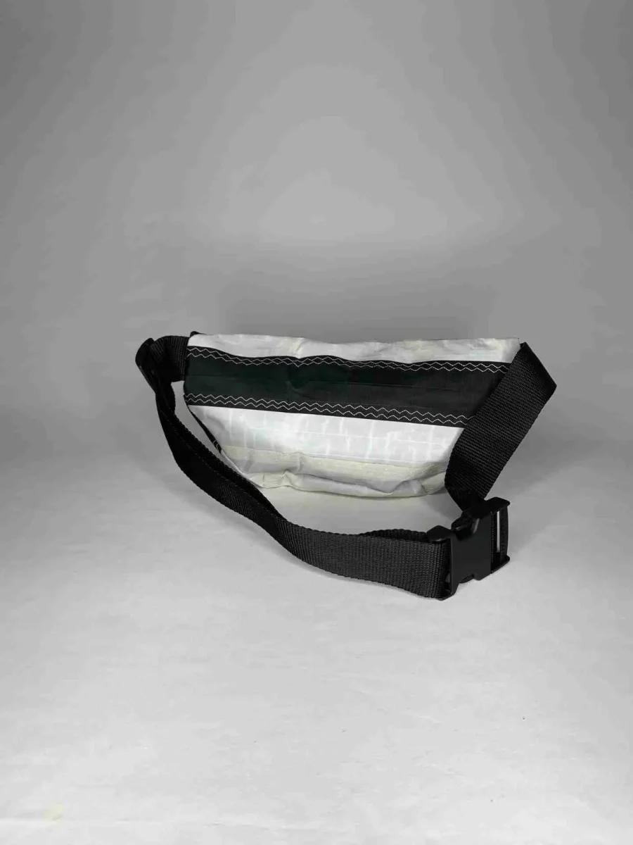 Realizzato artigianalmente in vela da kite riciclata, HARNESS è idrorepellente, resistente e unico: ogni pezzo conserva le caratteristiche originali della vela, come valvole, patch di riparazione, agganci per le linee e dettagli grafici, rendendo ogni marsupio diverso dagli altri.