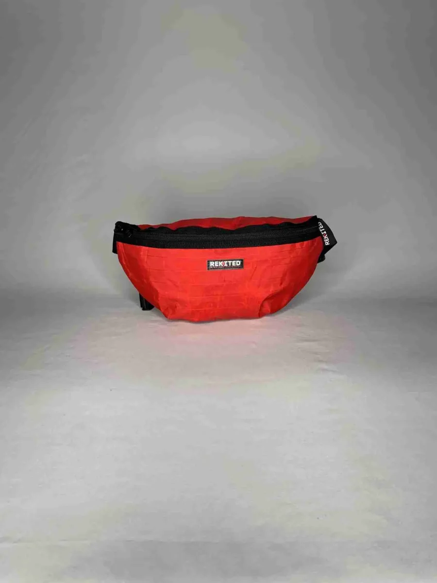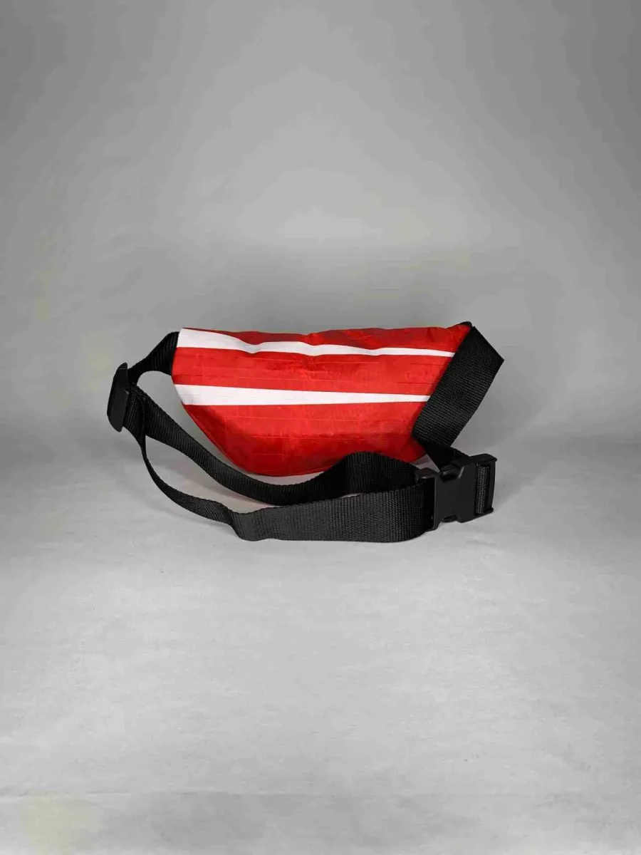 Realizzato artigianalmente in vela da kite riciclata, HARNESS è idrorepellente, resistente e unico: ogni pezzo conserva le caratteristiche originali della vela, come valvole, patch di riparazione, agganci per le linee e dettagli grafici, rendendo ogni marsupio diverso dagli altri.