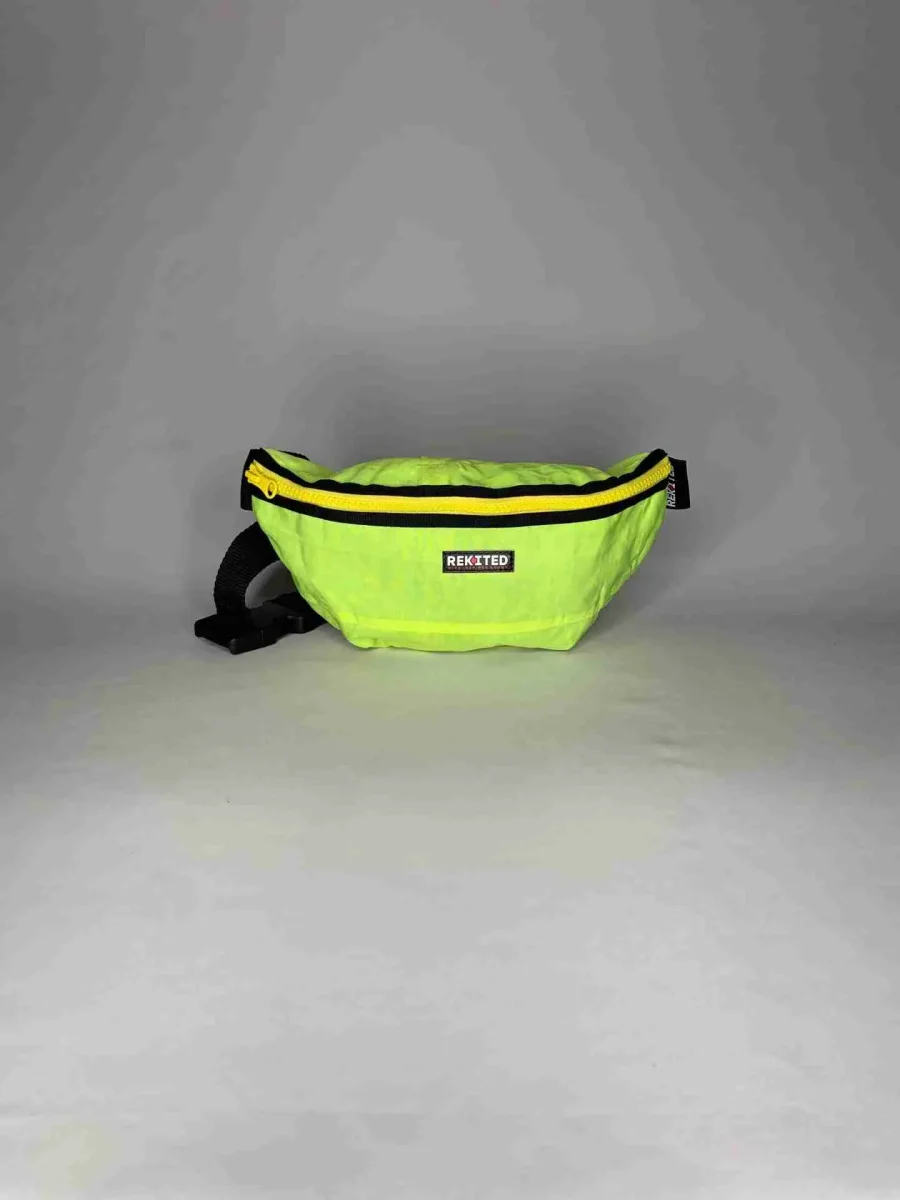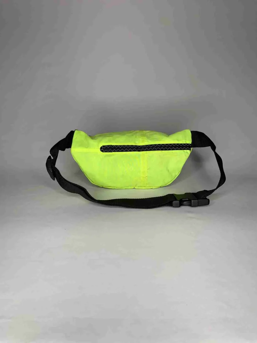 Realizzato artigianalmente in vela da kite riciclata, HARNESS è idrorepellente, resistente e unico: ogni pezzo conserva le caratteristiche originali della vela, come valvole, patch di riparazione, agganci per le linee e dettagli grafici, rendendo ogni marsupio diverso dagli altri.