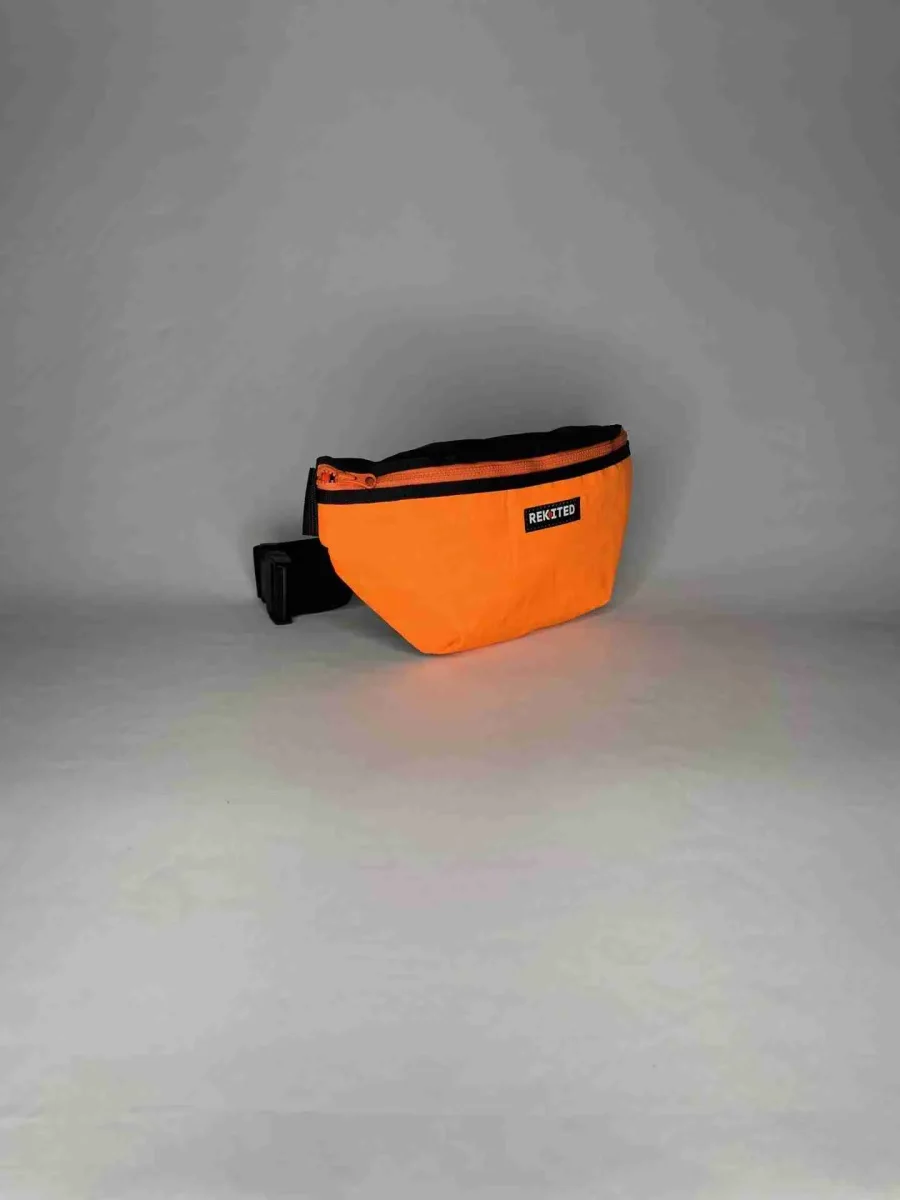 Realizzato artigianalmente in vela da kite riciclata, HARNESS è idrorepellente, resistente e unico: ogni pezzo conserva le caratteristiche originali della vela, come valvole, patch di riparazione, agganci per le linee e dettagli grafici, rendendo ogni marsupio diverso dagli altri.