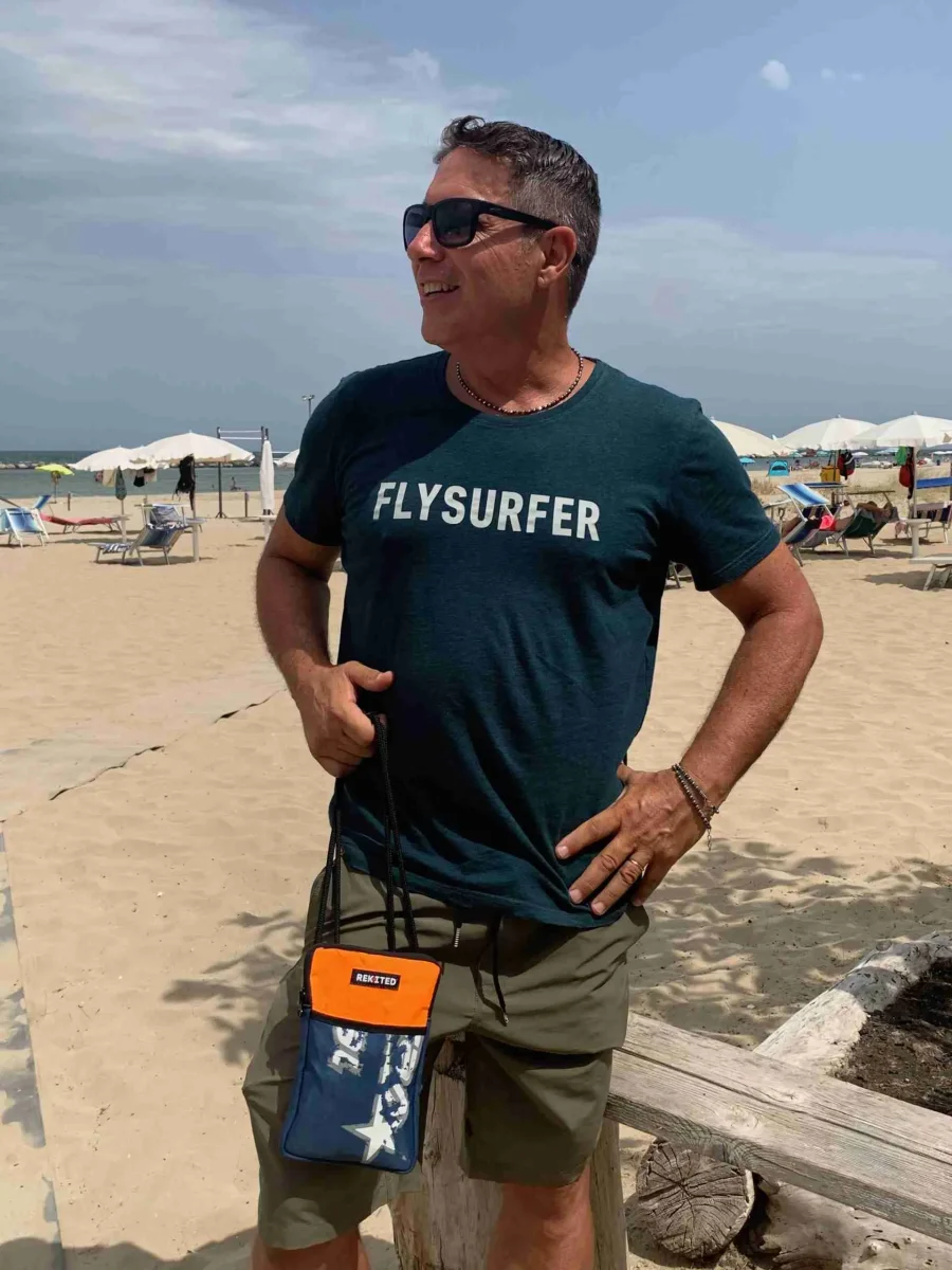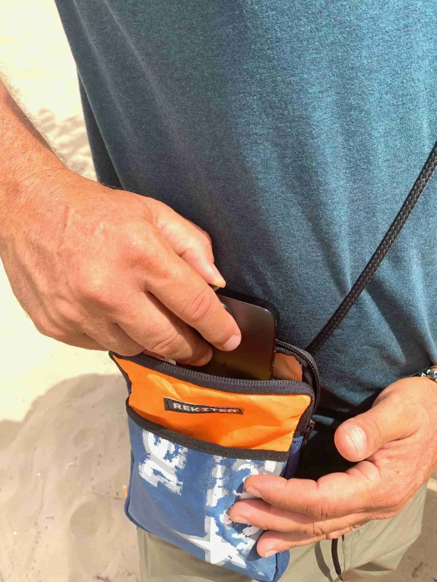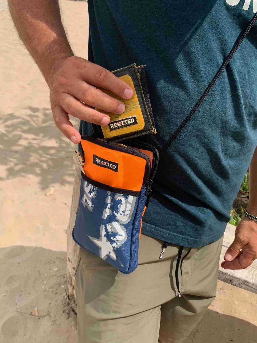LOOP è la reinterpretazione del borsello a tracolla dal design compatto di REKITED in vela kite.