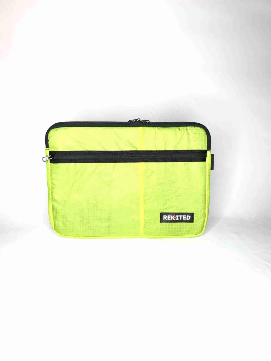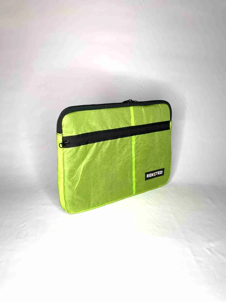 ONE FOOT 15 è la custodia slim di REKITED per notebook da 15 pollici, realizzato in vela da kite, è frutto di un riuso creativo, unico ed ecosostenibile.