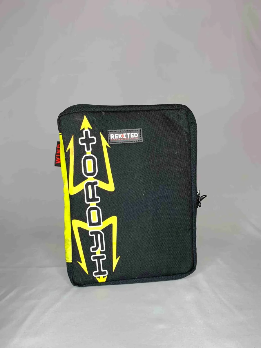 ONE FOOT è la custodia slim di REKITED per tablet o i-pad, realizzato in vela da kite, è frutto di un riuso creativo, unico ed ecosostenibile.