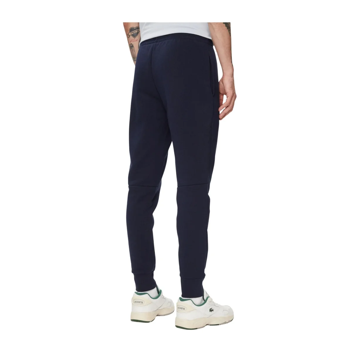 Pantalone Uomo sportivo firmato Lacoste in cotone a tinta unita. Un pantalone da tuta con vita elasticizzata e iconico logo applicato, che uniche stile e comodità. Perfetto per un momento di relax!