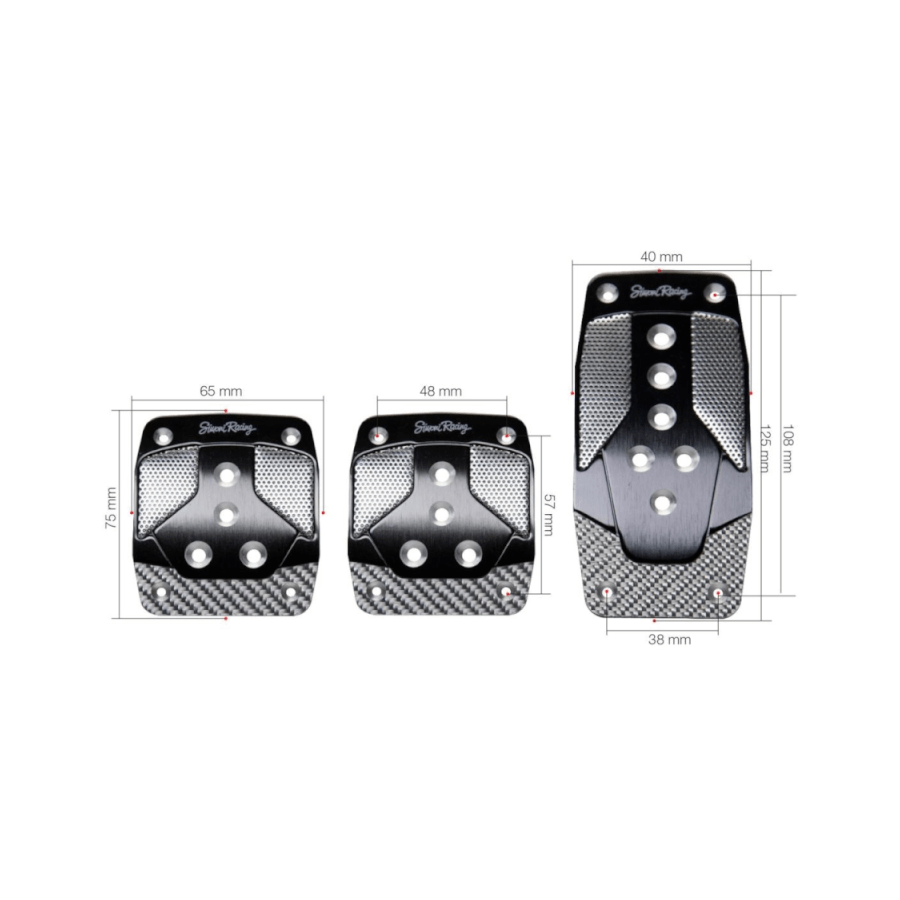 Pedali Sportivi Carbon Shade Simoni Racing. Kit 3 pedali sportivi in alluminio nero con dettagli in carbonio bianco.