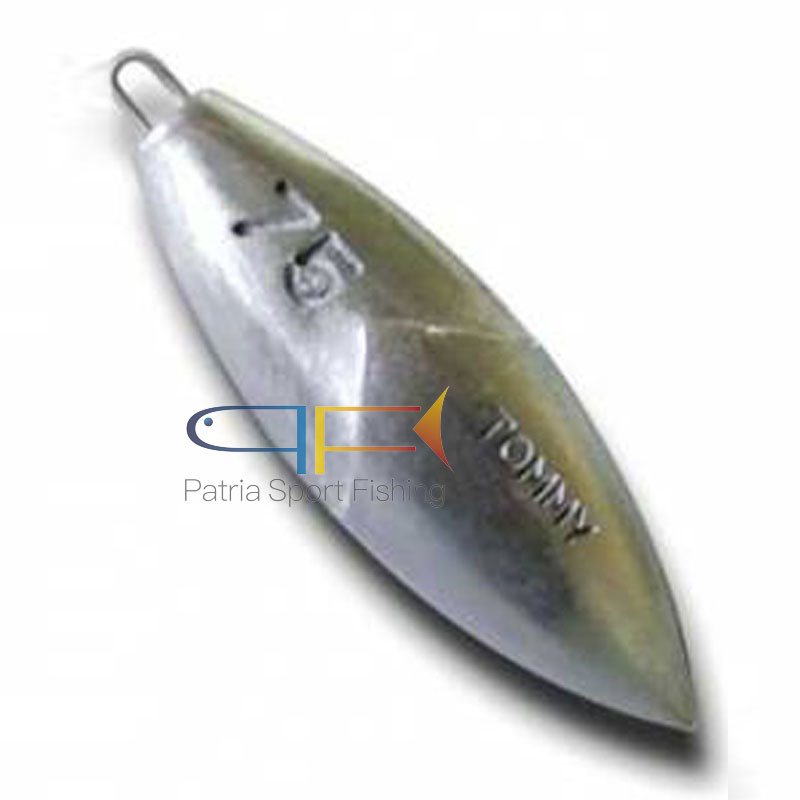 Le tre punte in piombo oltre ad assicurare una tenuta al fondo fanno sì che, ad ogni piccolo spostamento arino la sabbia, sollevando così, una piccola nube che attira le prede menzionate. Molto aereodinamico con delle piccole alette laterali che lo stabiliscono un poco nel lancio e lo alzano dal fondo nel recupero.