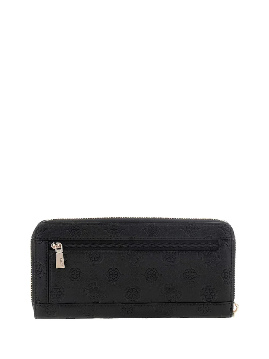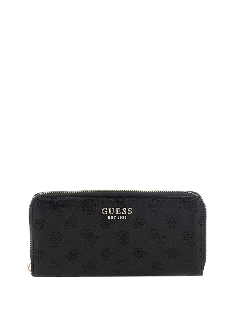 Il portafoglio da donna Guess Phoebe è elegante e pratico, con esterno nero in simil pelle e metalleria Colore oro pallido. Dotato di scomparto principale con tasca porta monete interna, slots per carte di credito e chiusura con cerniera lampo. Composizione: 100% Poliuretano. Misure: 21x10x2 cm.