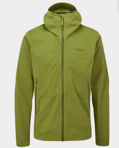 Giacca impermeabile e antvento della Rab in tecnologia Pertex. Un comodo ultimostarto per proteggersi dagli agenti atmosferici e restare comodi e asciutti durante le escursioni.