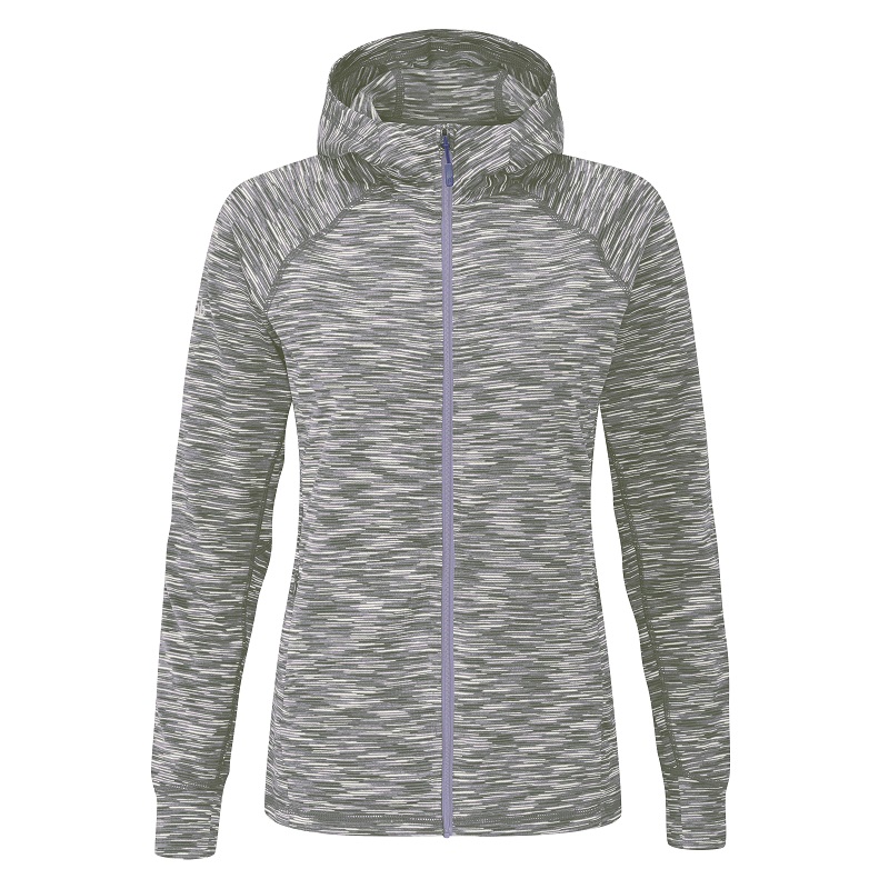 La leggera felpa Rab da donna, ideale strato intermedio per le sessioni d’allenamento indoor e le scalate estive.