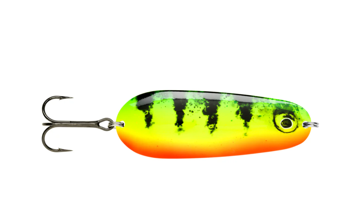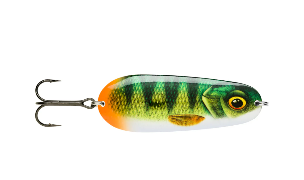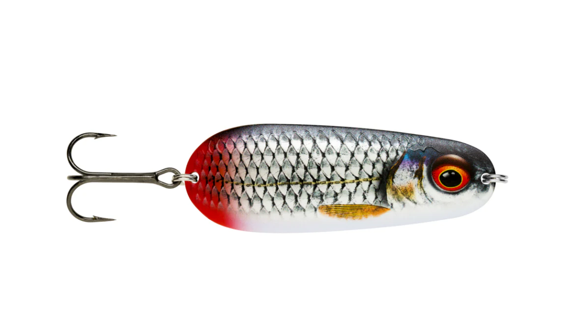 Il Rapala Nauvo porta un aggiornamento moderno ad un tradizionale ondulante in metallo. È dotato di un nuoto scodinzolante ampio e realistico su un recupero costante, mentre su un recupero più veloce aggiunge guizzi irregolari rompendo il ritmo e aggiungendo dei flash. Ideale per ingannare grossi Lucci e Siluri. Armato con ancorette VMC Black Nickel.
