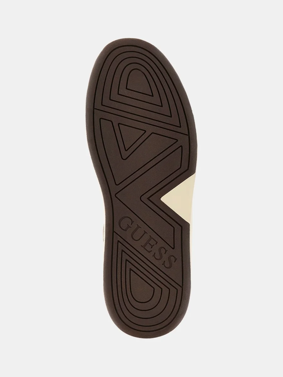 Scritta logo fronte, lato e su suola, triangolo logo sul retro.