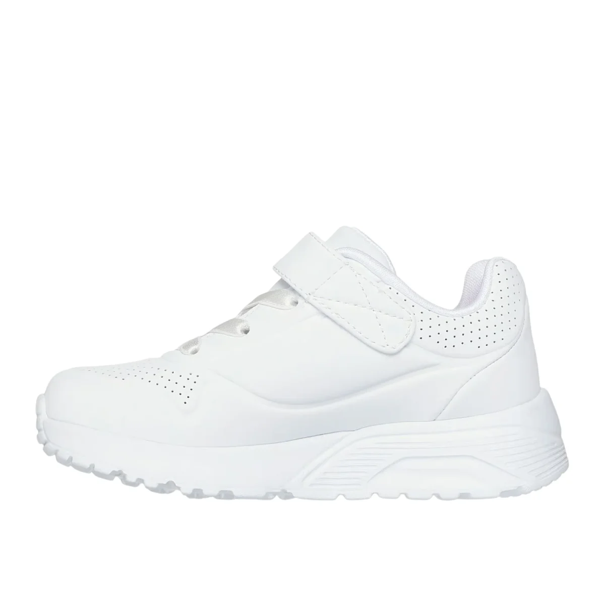 Queste Sneakers bambina di Skechers combinano stile e comfort in un’unica scarpa irresistibile. Il design con stampa a cuori all over cattura lo sguardo, mentre la chiusura con lacci elastici e cinturino regolabile garantisce una vestibilità perfetta e facile da indossare. La soletta Skechers Air-Cooled Memory Foam avvolge il piede in morbidezza, riducendo l’affaticamento durante le lunghe giornate di gioco. La suola esterna flessibile assicura trazione ottimale su ogni superficie, e l’intersuola a zeppa ammortizzante protegge ogni passo. Pratica, confortevole e adorabile: la scelta ideale per le piccole fashioniste in movimento.