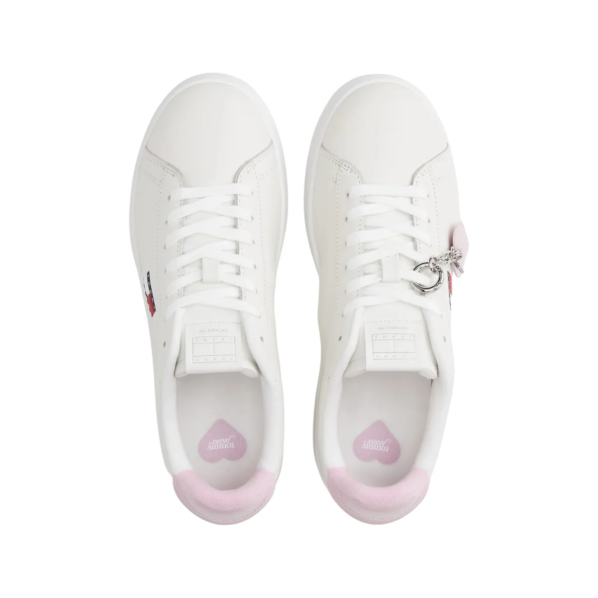 Scopri il fascino romantico di queste sneakers sportive in pelle bianca, perfette per chi desidera uno stile sofisticato nel quotidiano. Il charm a cuore imbottito con stella in metallo e il logo Tommy Jeans sulla soletta aggiungono un tocco di eleganza distintivo. Realizzate in pelle di qualità con interno in poliestere e suola in gomma resistente, garantiscono comfort e durabilità. Il design basso con stringhe e punta tonda si adatta facilmente a qualsiasi outfit, mentre i dettagli Tommy sul lato e sul retro completano l’estetica ricercata. Una scelta ideale per chi vuole combinare sportività e femminilità senza compromessi.