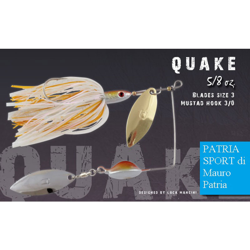 The classic spinnerbait is made by a wire structure with a one or more blades linked on swivel or clevise in the upper part and by a lead head with hook and skirt in the under part. With Quake 5/8oz the Herakles team decided to radically innovate this usual design: the wire structure stays the same, but an ABS head with hook and skirt it has been added on the upper part. In the under part the lead head with a blade attached trough a split ring and a swivel. The reason behind this “mutation” is the idea to develop a spinnerbait that allows a good retrieve on flats, and rocky grounds, where a classic under part hook does not always guarantee good performances. As it could be easily guessed by its name, the swim of Quake 5/8oz is characterized by a high vibrations, being so perfect for stimulate the attacks of predators fishes by simulating a school of prey fishes or simply by disturbing them.
