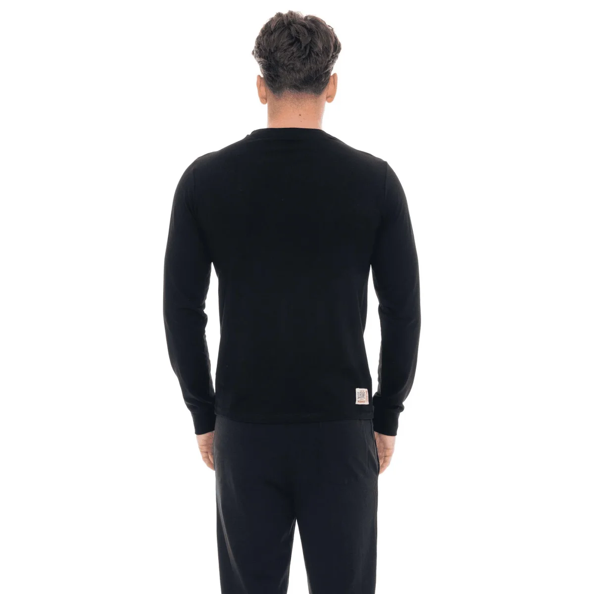 T-shirt da uomo in cotone elasticizzato a manica lunga con logo grande “Basic”