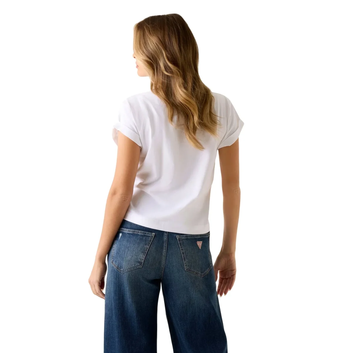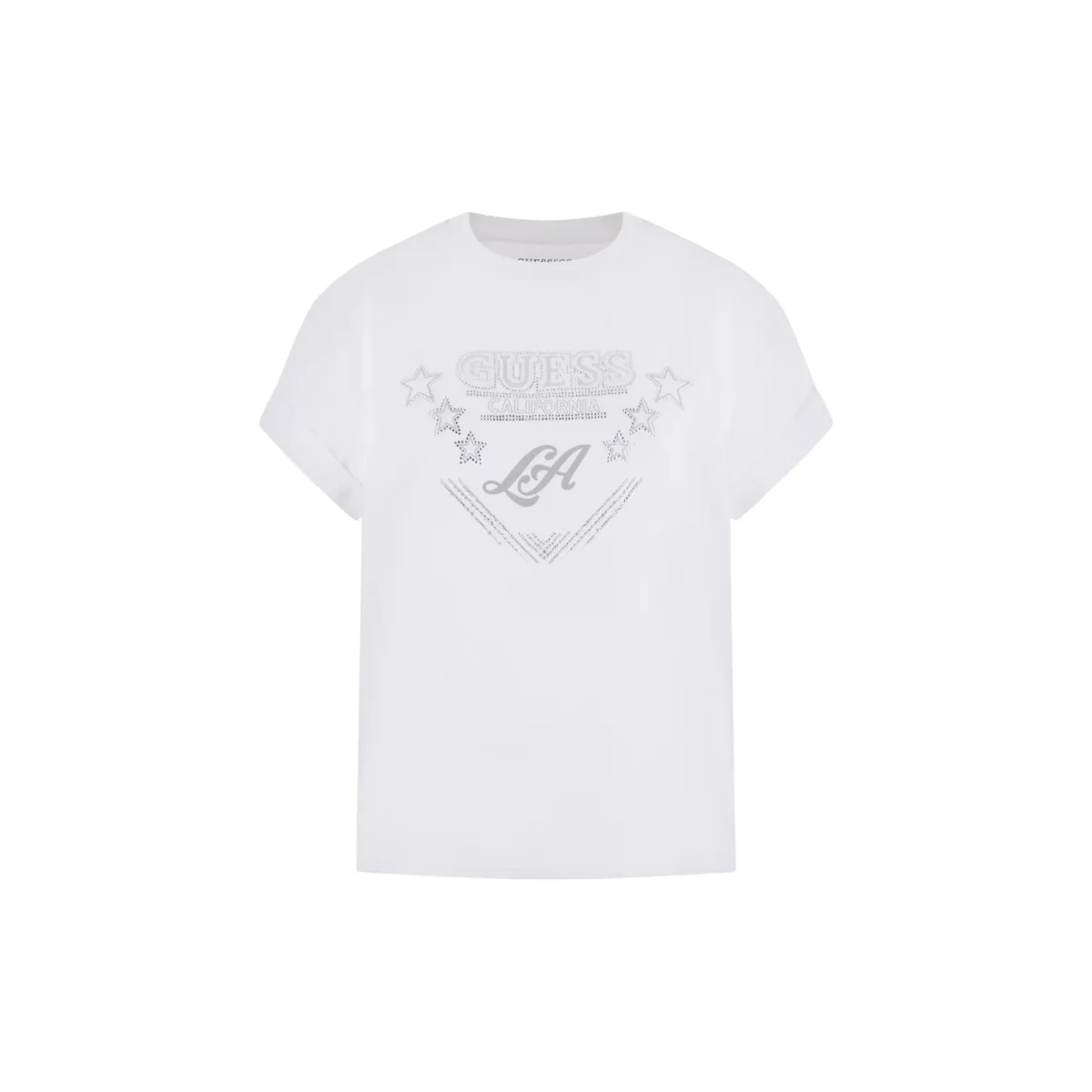 Un classico aggiornato con dettagli preziosi, questa t-shirt in jersey firmata Guess abbina comfort e stile. Le maniche corte e il girocollo garantiscono vestibilità quotidiana, mentre la stampa con logo impreziosita da strass dona un tocco femminile e luminoso. La vestibilità regolare assicura comodità senza rinunciare a un look curato. Perfetta da indossare da sola o sotto blazer e giacche leggere, è un capo versatile adatto a look casual o più sofisticati.