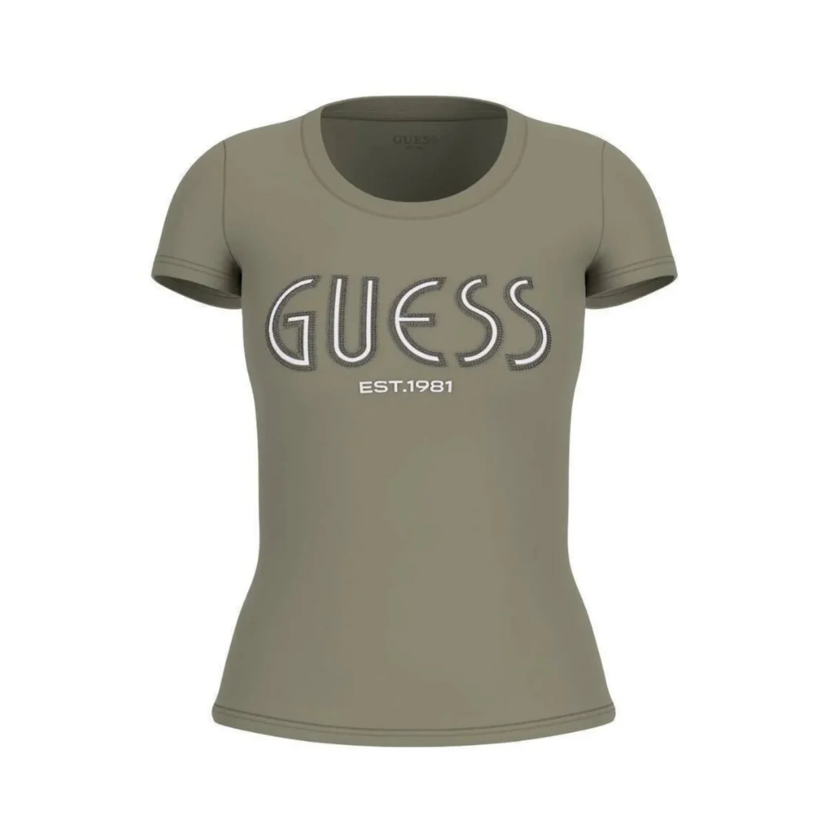 Scopri la T-shirt Uomo firmato Guess! Realizzata in cotone elasticizzato, con una vestibilità aderente è arricchita da una stampa logo frontale con strass. Una t-shirt perfetta per un look casual e trendy.