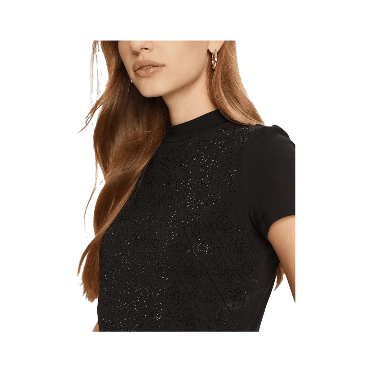 T-Shirt Mock Neck Donna Nero Logo 4G Strass