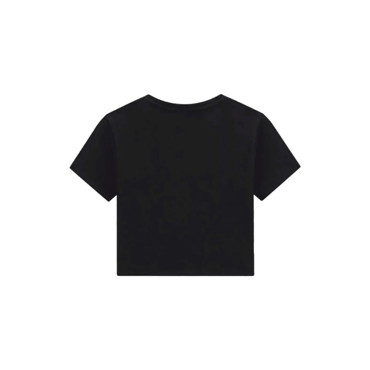 T-Shirt Nera Crop Stampa Labbra Maniche Corte
