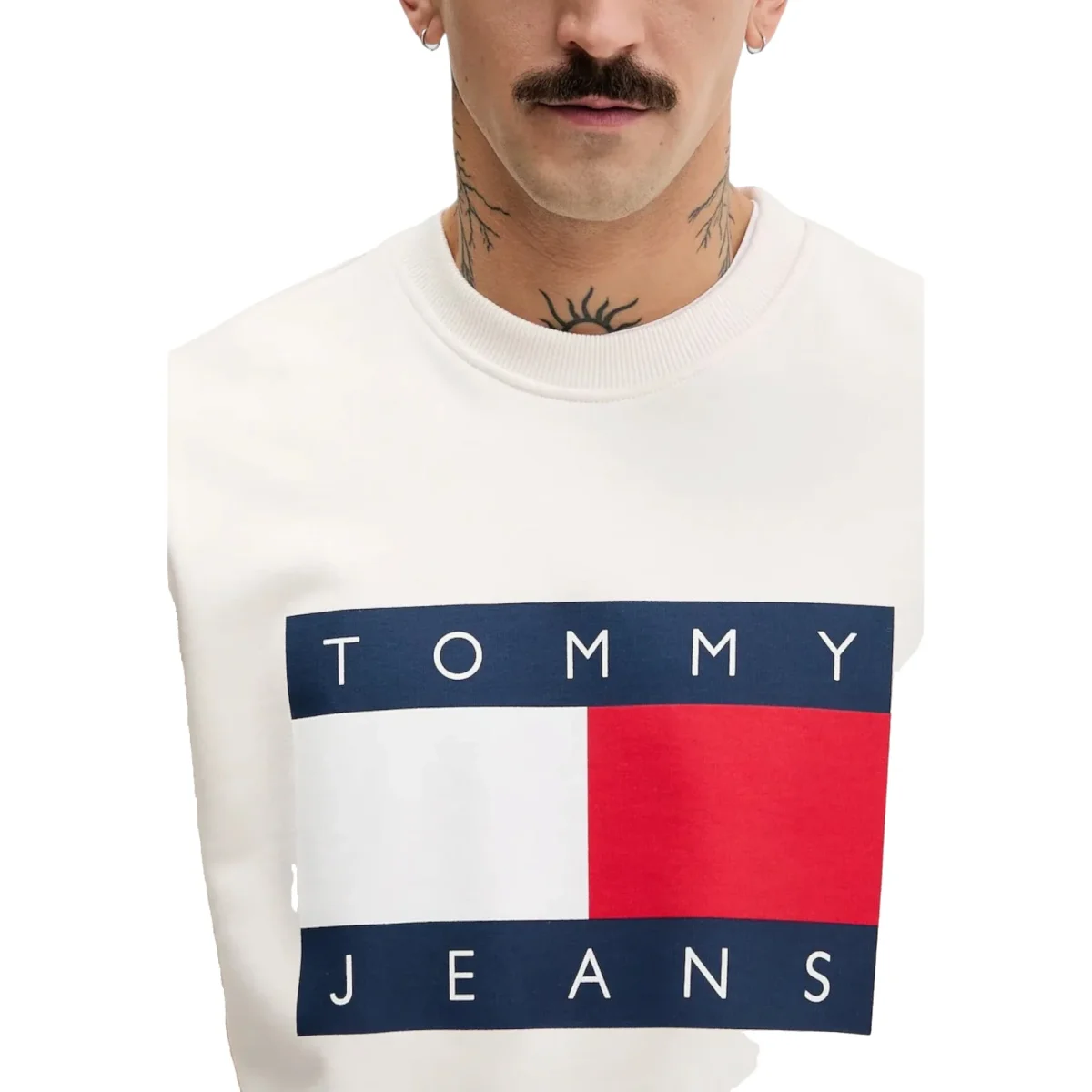 Tommy Hilfiger Jeans Felpa Uomo Bianco Cotone Organico DM0DM22643