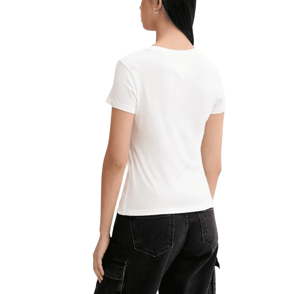 La t-shirt donna Tommy Hilfiger Jeans bianca è l’essenziale versatile per il tuo guardaroba primavera estate. Realizzata in cotone organico 100%, questa maglietta con maniche corte e scollo tondo offre morbidezza, traspirabilità e rispetto per l’ambiente. Il suo design iconico del brand americano assicura uno stile casual e distintivo, rendendola perfetta per ogni look, dai jeans alle gonne, mantenendo un’eleganza semplice e luminosa.