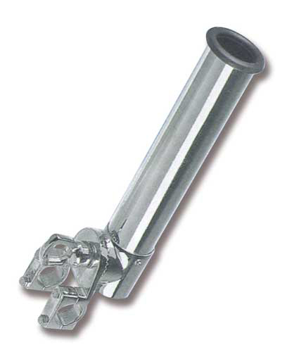 Fabbricato in ottone cromato. Completo di boccola in gomma di riduzione per tubo Ø 22-25 mm. Ø foro mm. 40Morsetto Ø 30 mm. .