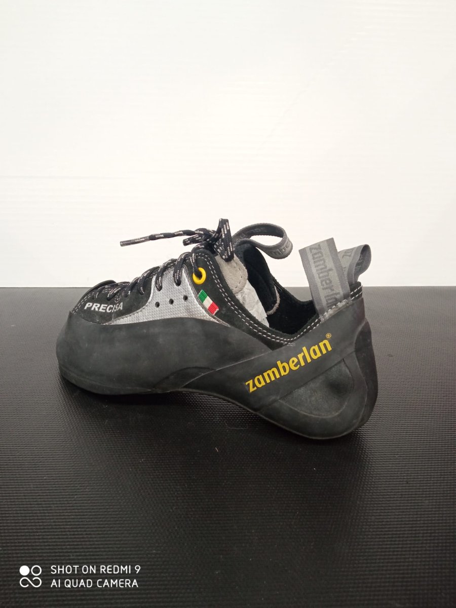Scarpetta d’arrampicata Zamberla, usata e in buono stato, forma poco arcuata.