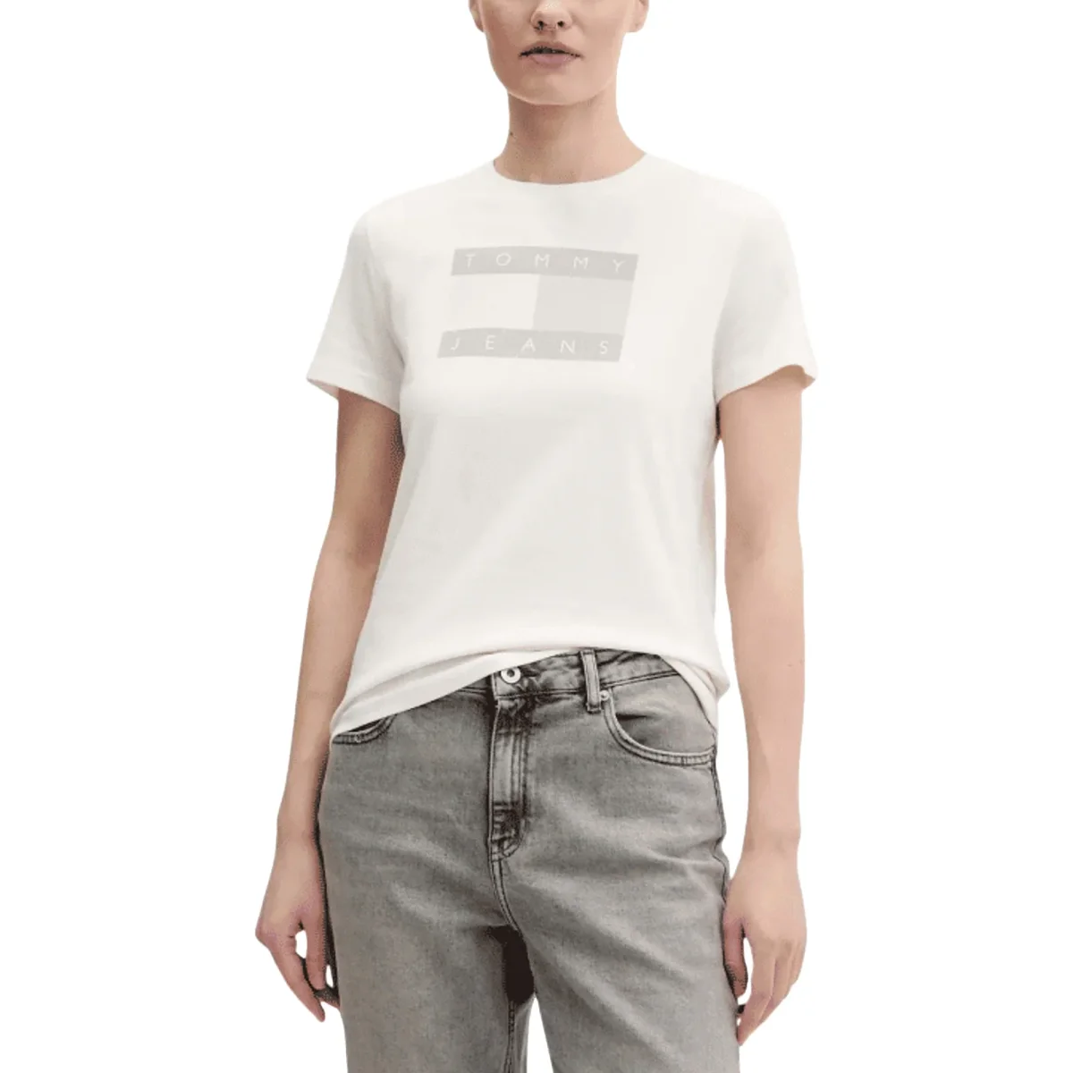 TOMMY HILFIGER T-Shirt Donna Bianco Cotone Organico Stampa