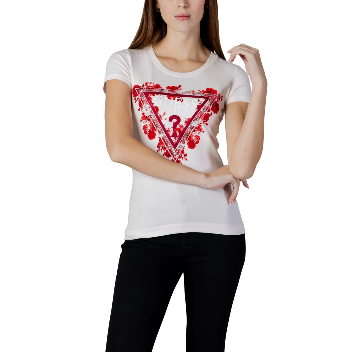 T-shirt Bianca Donna Con Triangolo Floreale